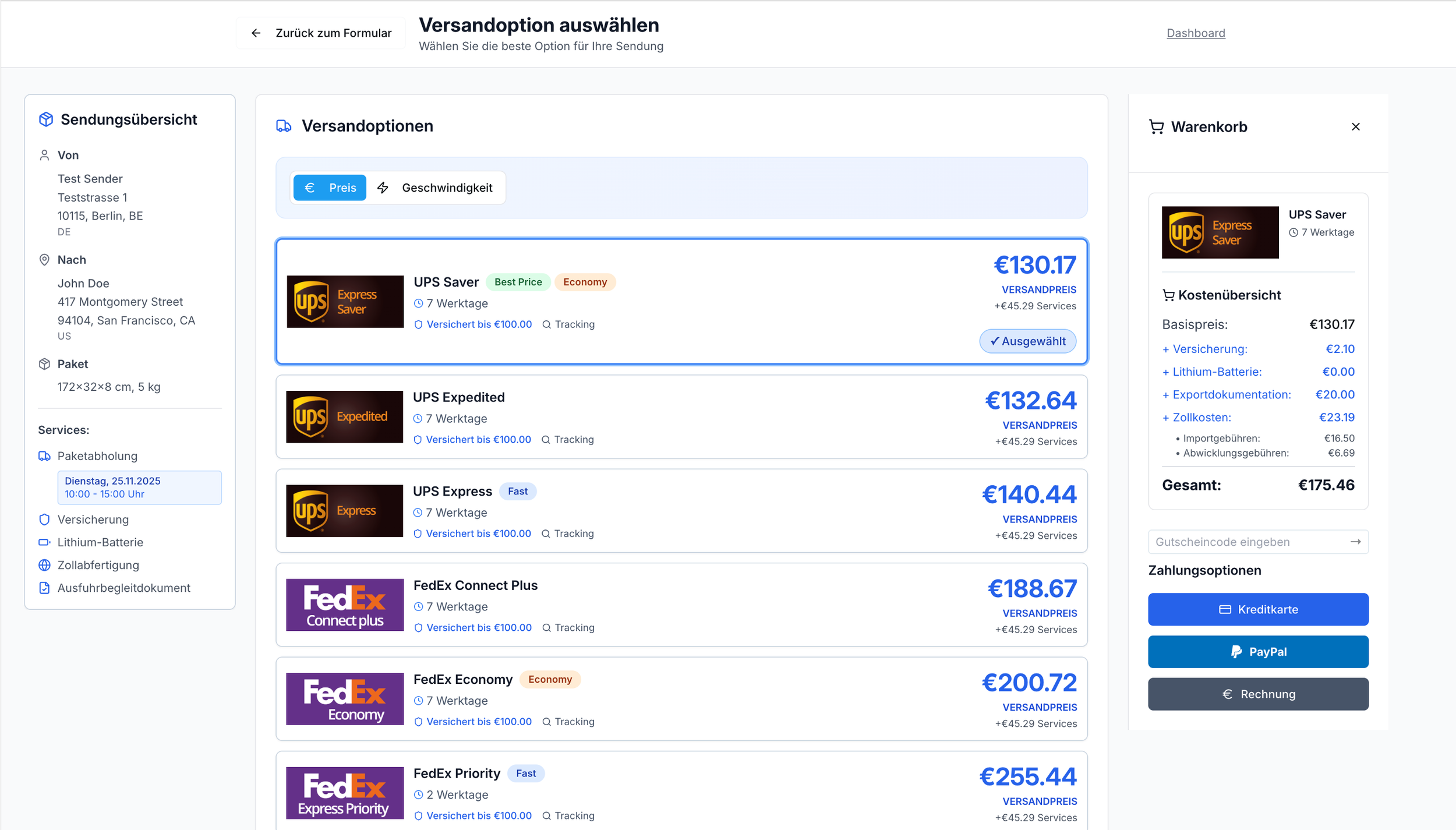 Tarifvermittler & System für skalierbare, automatisierte Versandprozesse.